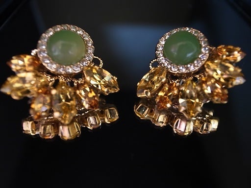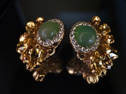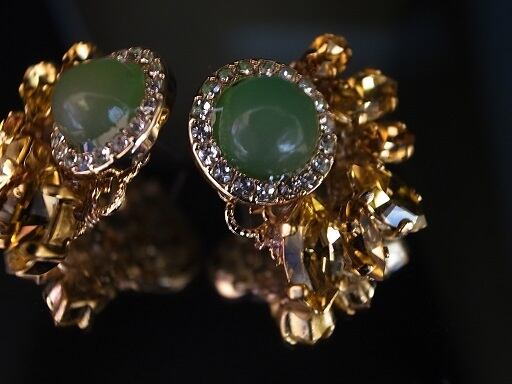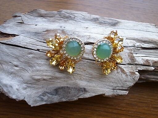 ひまわりのピアスを作りました。緑の部分はグリーンオニキスです。黄色い部分は、2種類のスワロフスキー社のパーツで作っています。夏の日差しに負けない黄色と緑ですが、意外に落ち着いている色あいです。すこしゴッホのひまわりに影響されています。