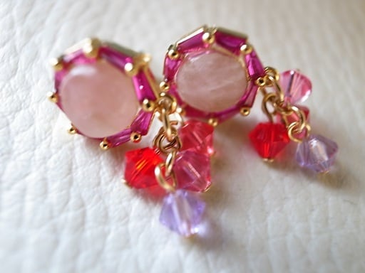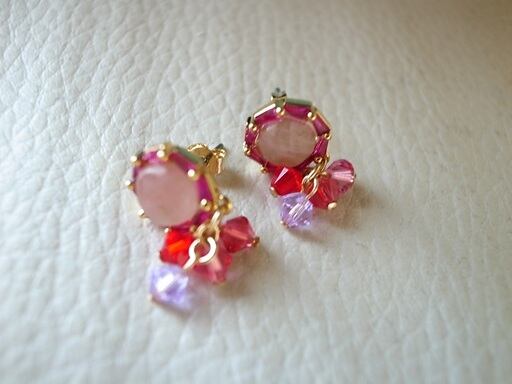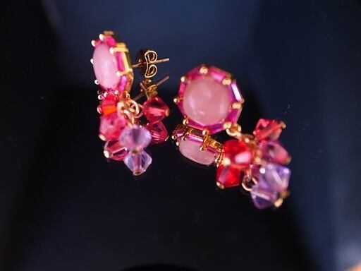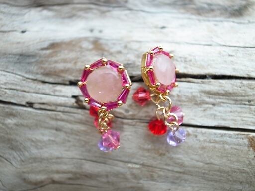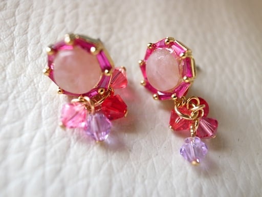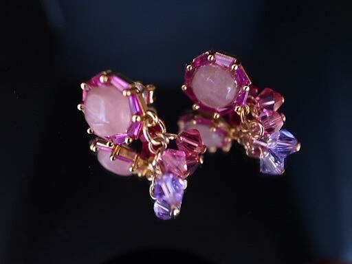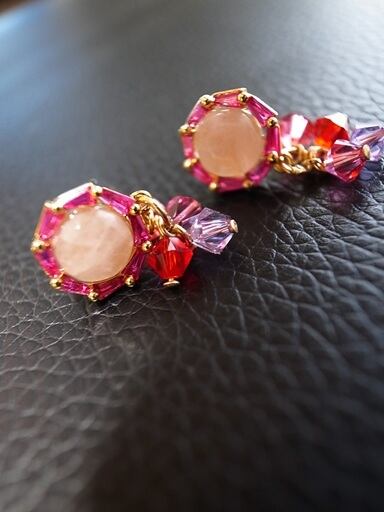 今井美樹さんの「静かに来たソリチュード」をヒントにピアスを作りました。夏の歌だと思って製作を始めたのですが、どうやら夏の歌ではないようです。風に飛ばされる花びらのように小さく可愛いアクセサリーを考えました。中はピンククオーツです。金の輪(環)や針金部分はゴールドフィルド(14K)です。