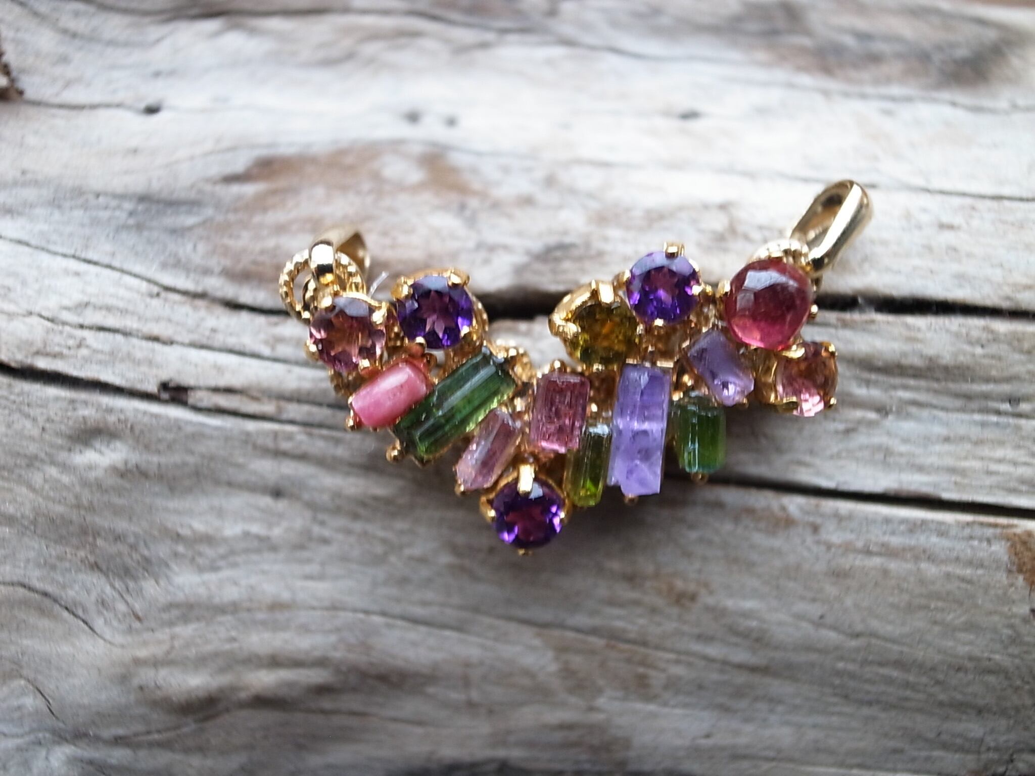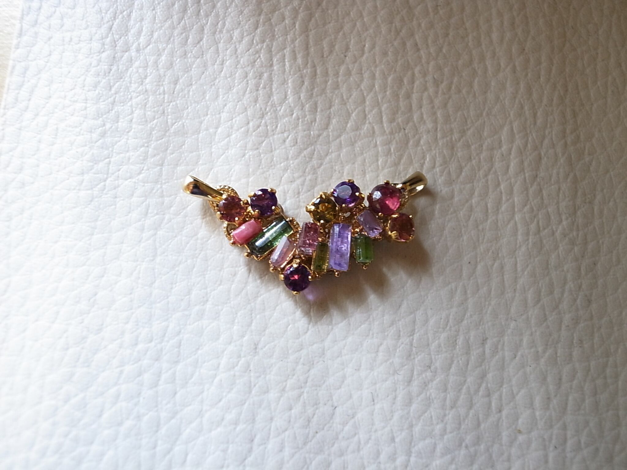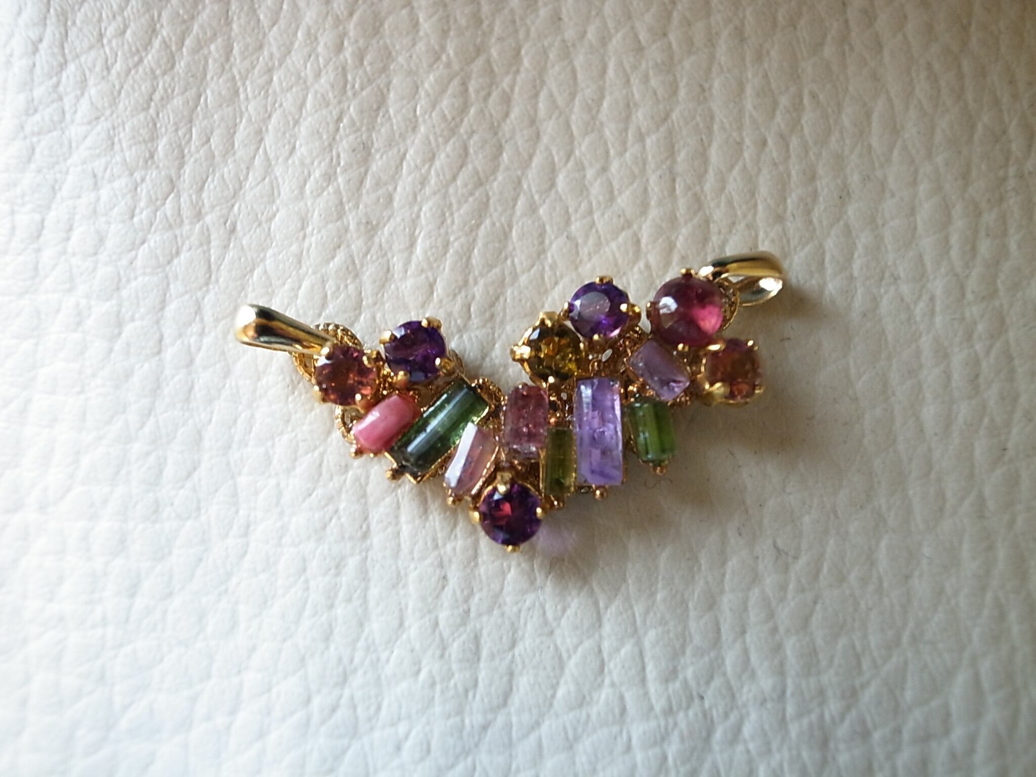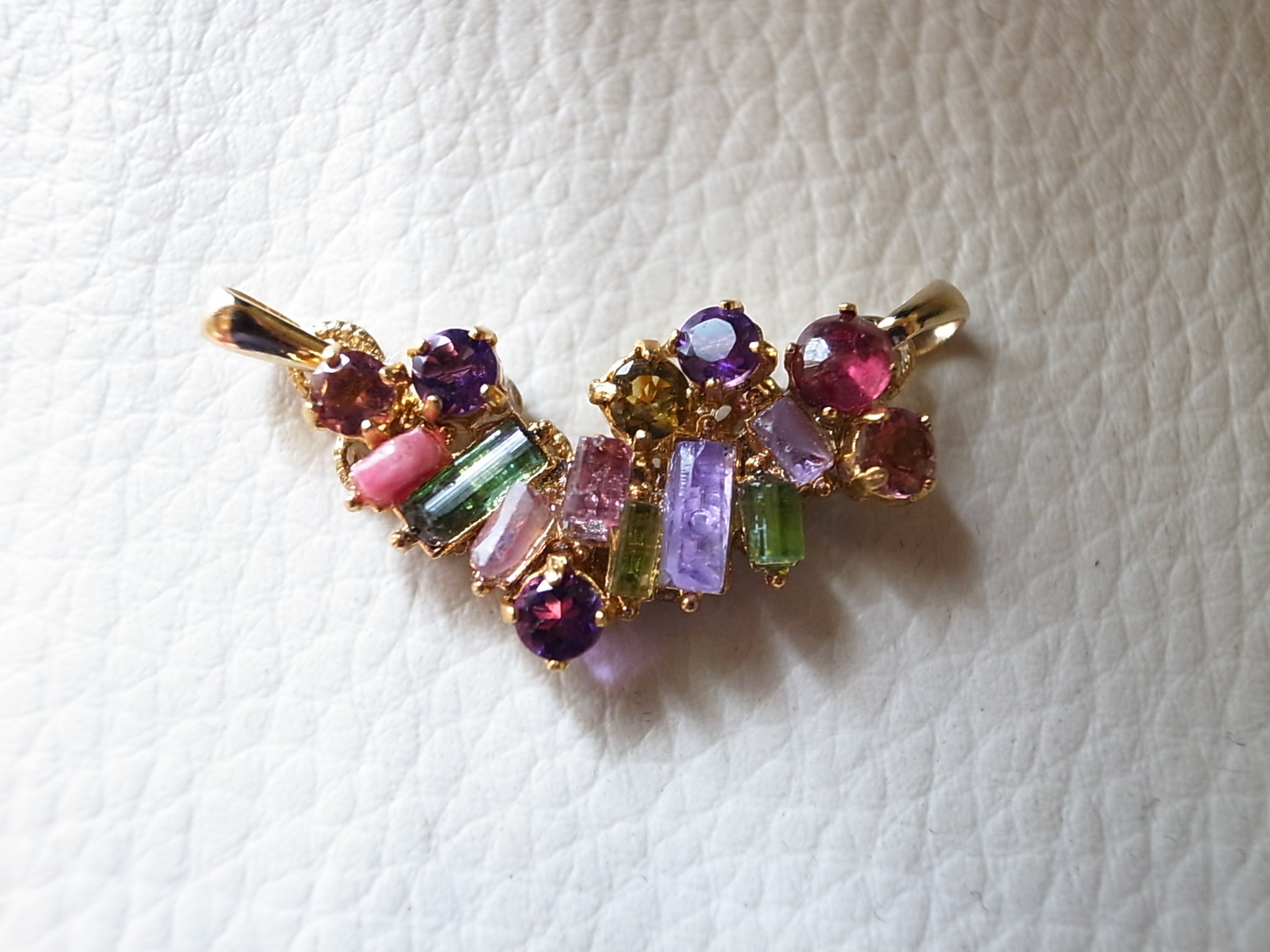 ブルガリ展に影響され、全部宝石でネックレスを作りました。ガラスと全然違う宝石ならではの存在感があります。小さくても綺麗です。トルマリン、アメジスト、ガーネット、インカローズならではの光り方をします。原石でもトルマリン高かったので、残念ながら安くは売れません。悪しからず