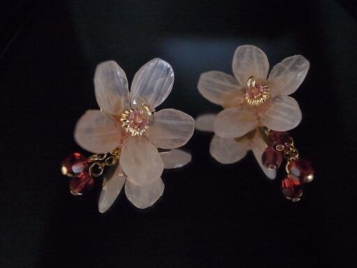 ローズクオーツでピアスを作ってみました。ちなみに9ピン、チェーン、Tピン部分はゴールドフィルドです。