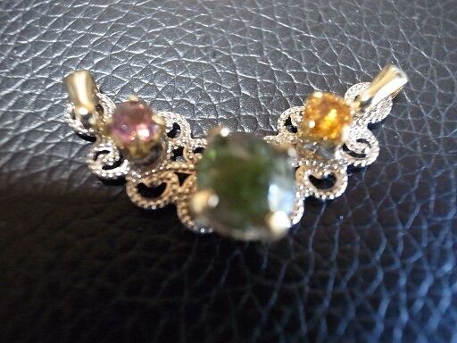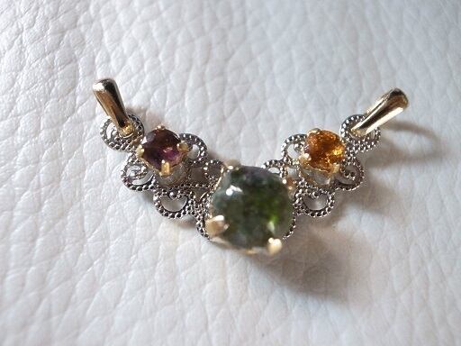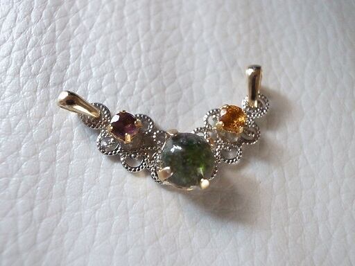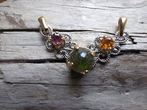 異なる色のトルマリンをカットして磨いたネックレスです。3枚目の写真は、チェーンをつけたイメージが分かるようにしていますが、チェーンは付属していません。アンティークな感じを出そうと思い作りました。