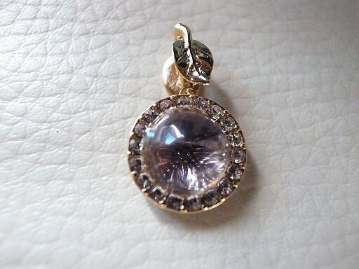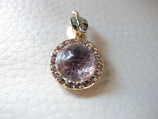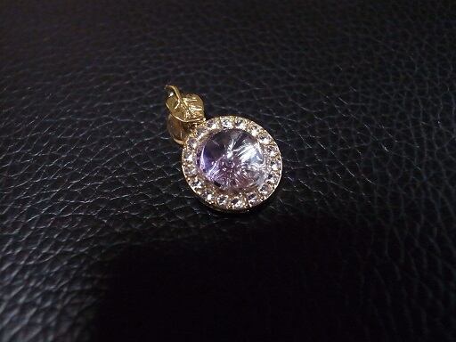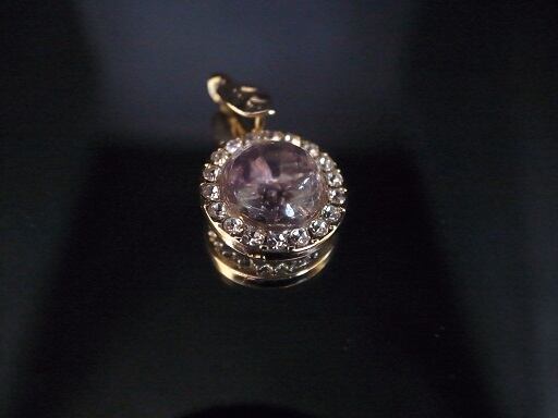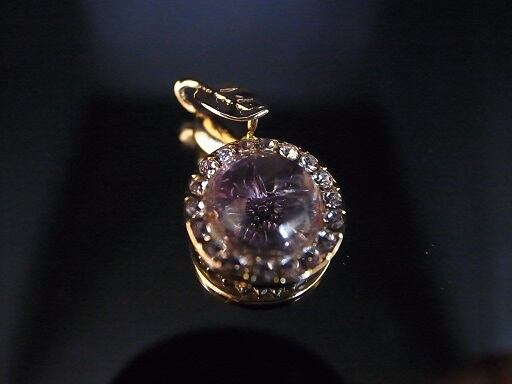 アメジストのネックレス・ヘッドです。ゼリーのような透明なアメジストを利用して後ろの石座が乱反射して光ります。
