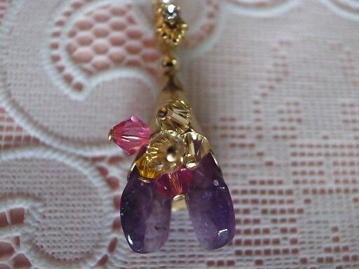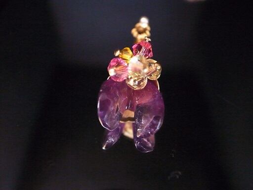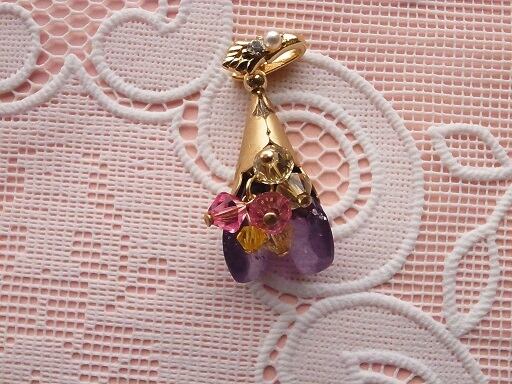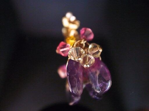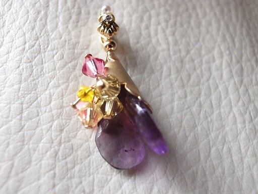 自分でカットして磨いたアメジストをベースにビーズでブーケのアクセサリーを作ってみました。胸元で輝いて綺麗なように、いろいろなビーズを織り交ぜました。