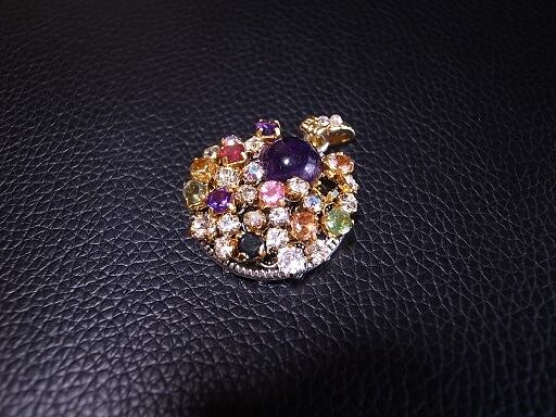 トルマリンとシトリンとアメジストでアクセサリーを作りました。透明なビーズの部分はクリスタルで仕上げています。Bizoux(ビズー技法)で宝石を敷き詰めて作っています。星座をイメージして作りましたが、出来上がったものは、花の様に綺麗な色調になりました。先日行ったティファニー展に影響を受けています。